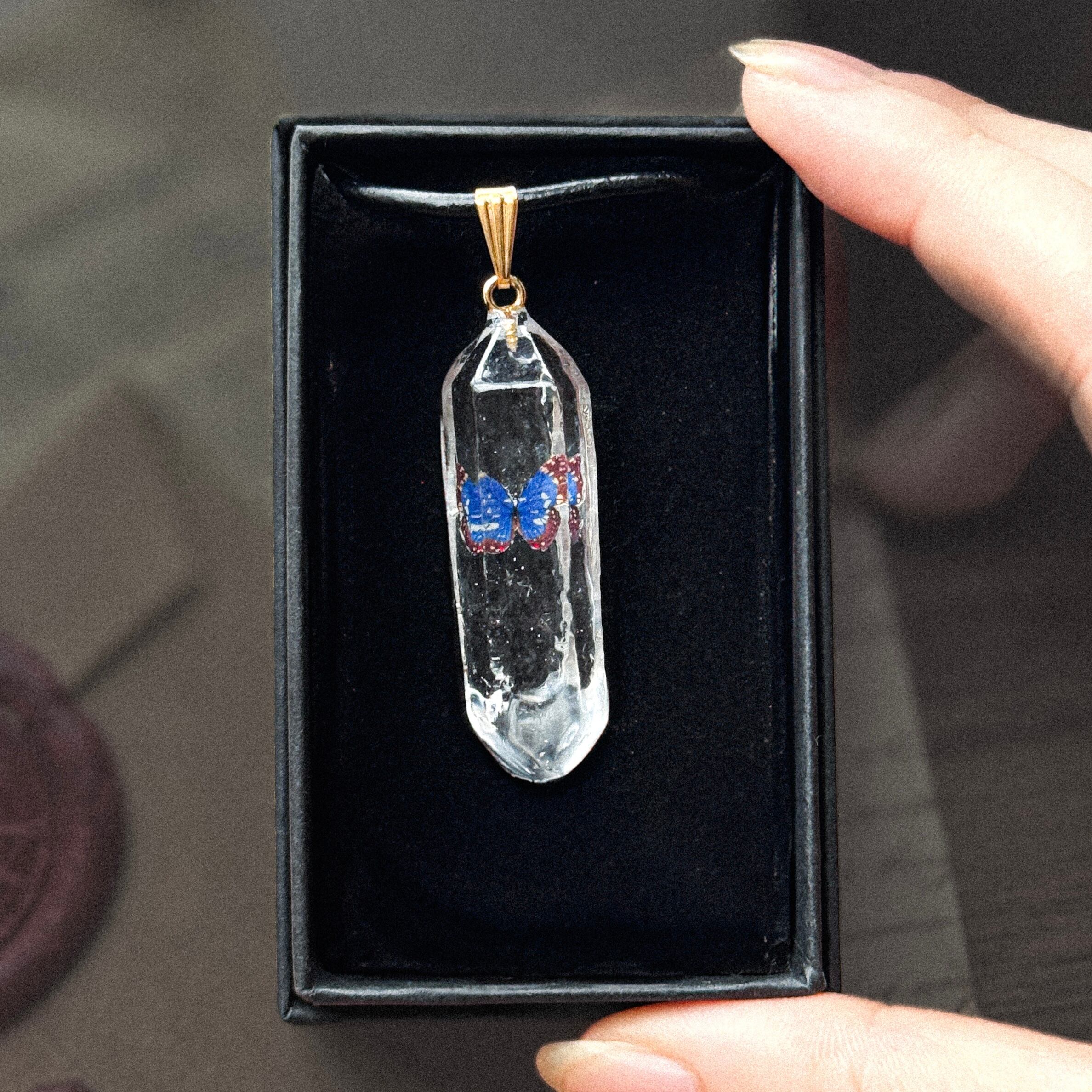 琥珀のような、水晶の中にイキモノを閉じ込めています。