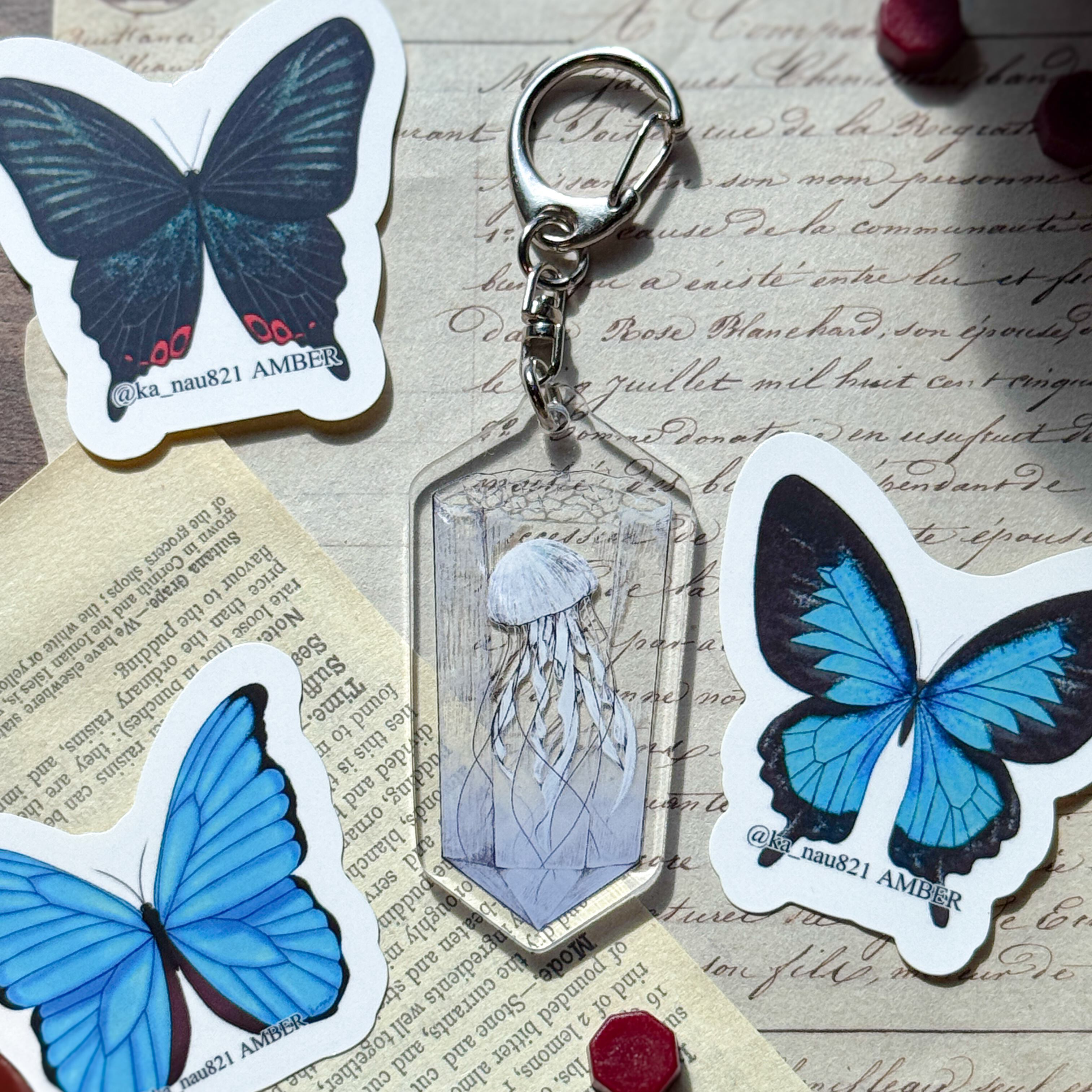 【ステッカーセット・数量限定】クラゲ鉱石のアクリルキーホルダー
