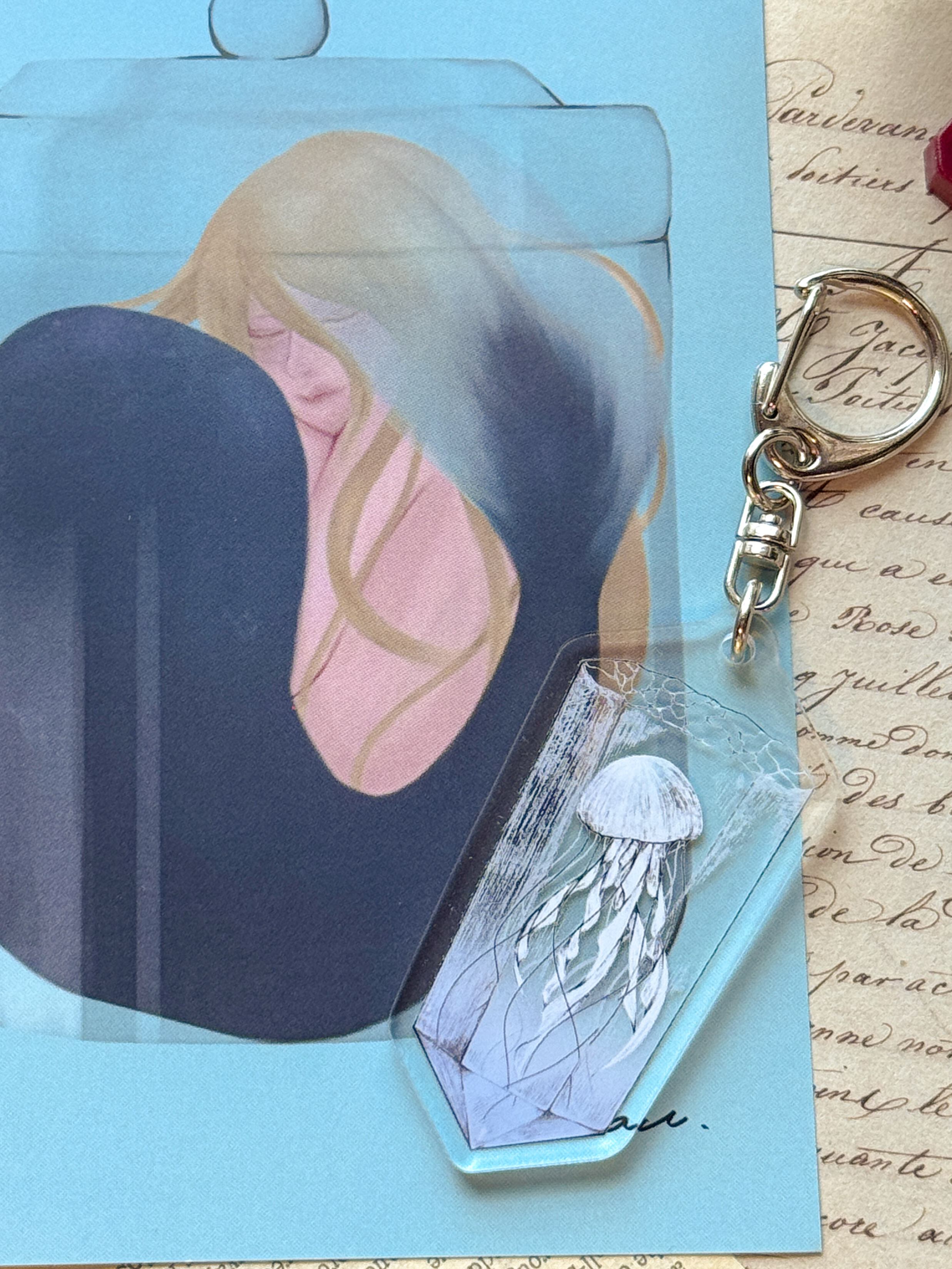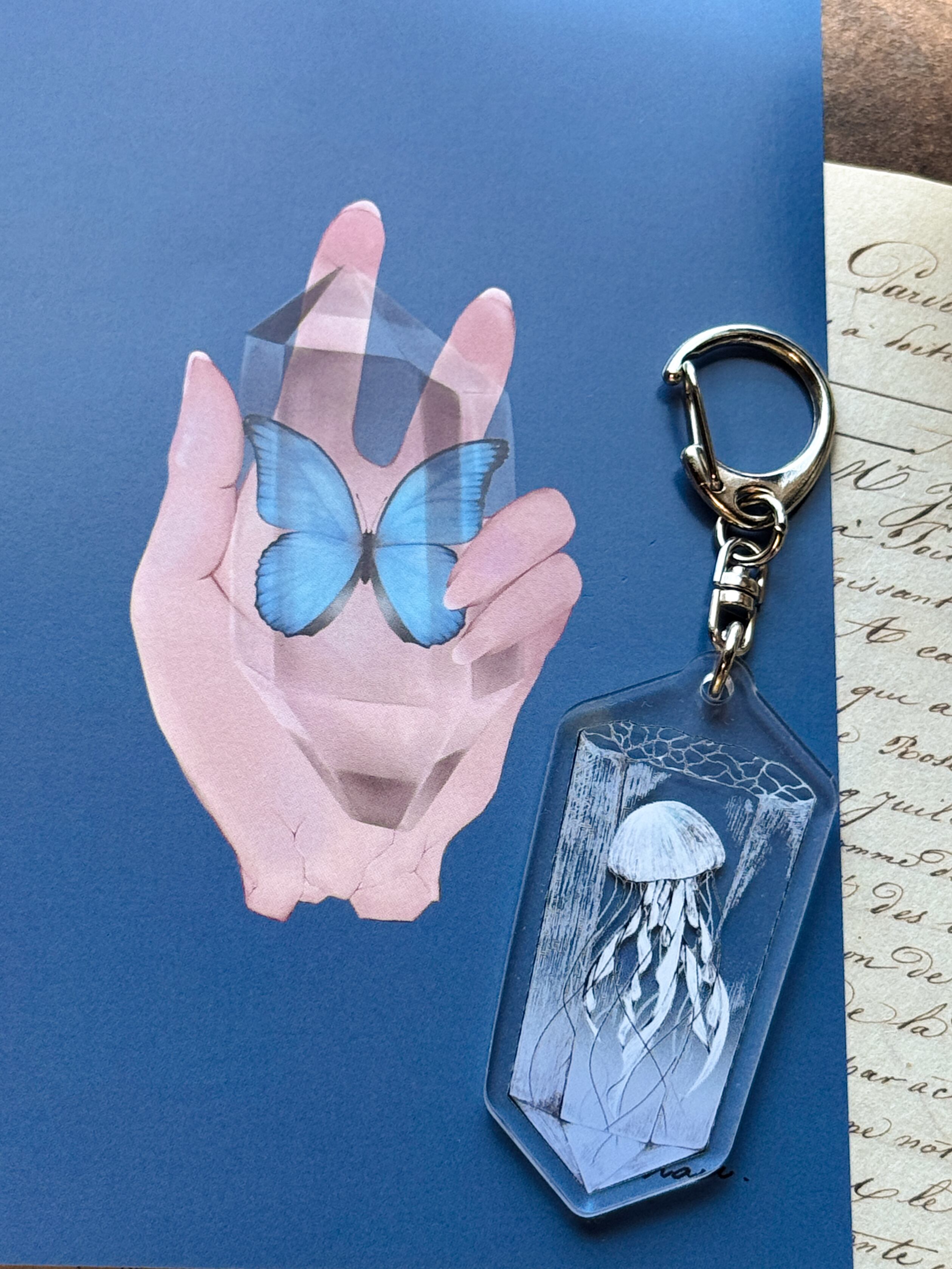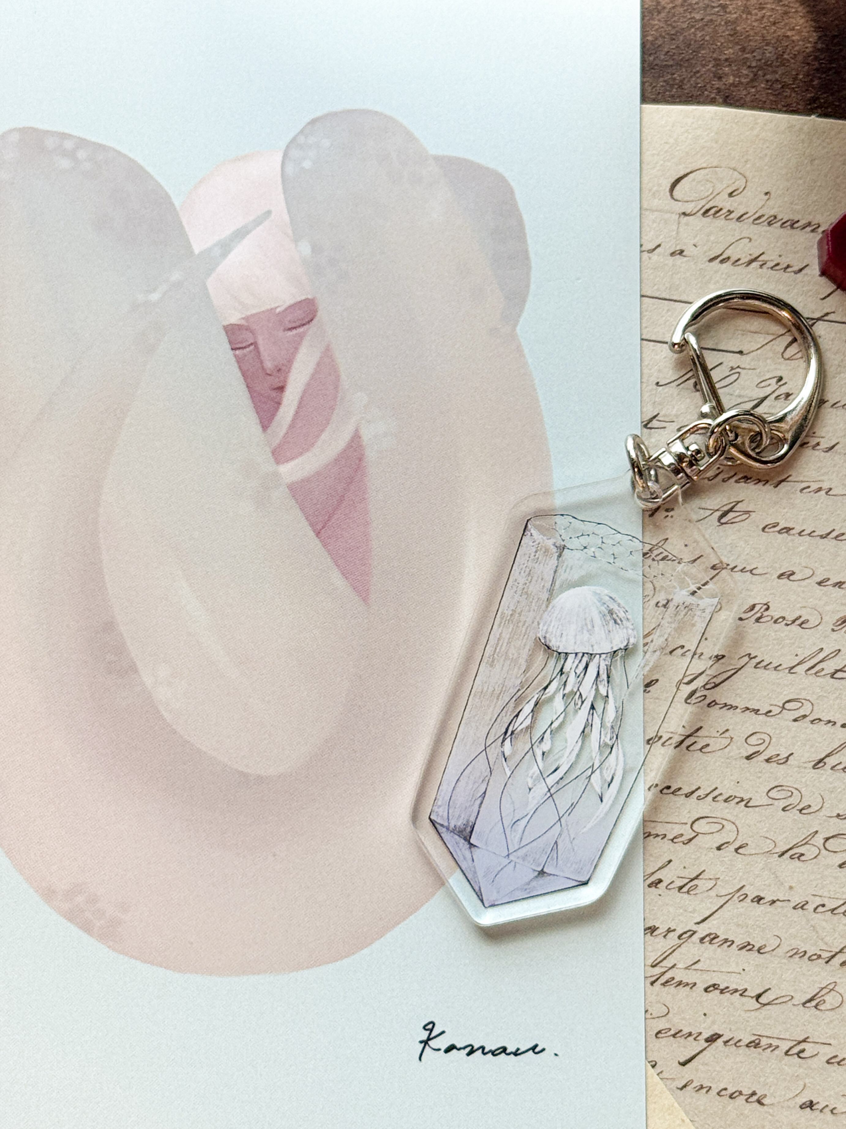 ・アクリルキーホルダー(クラゲ水晶標本イラスト/60mm)