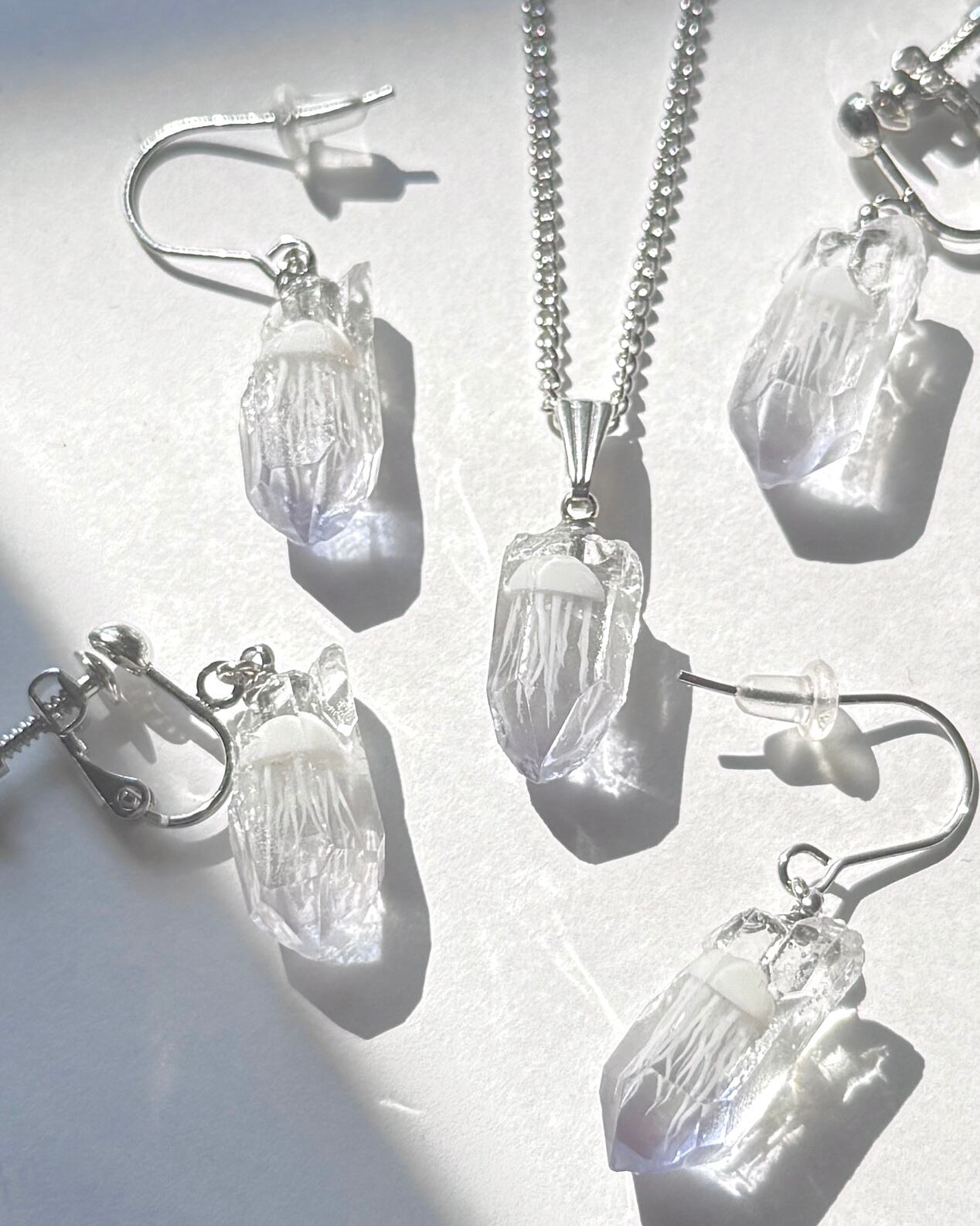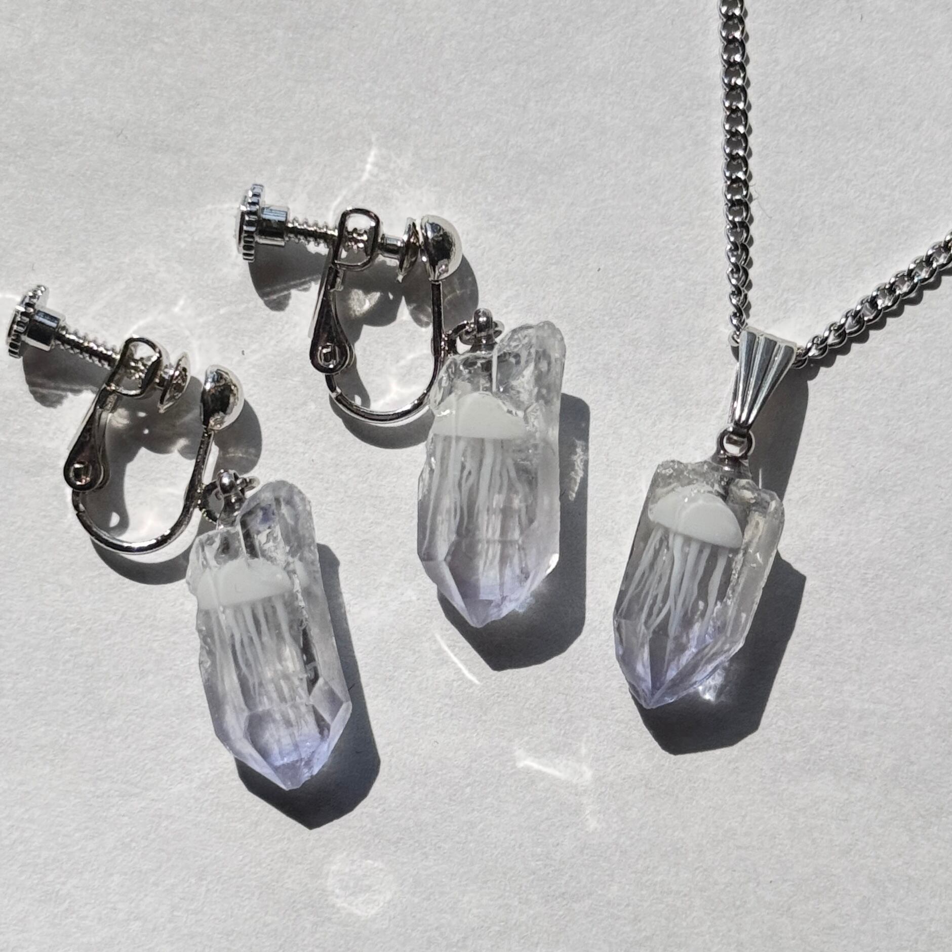・クラゲ鉱石の標本アクセサリー(ピアスorイヤリング/ネックレス 選択可)