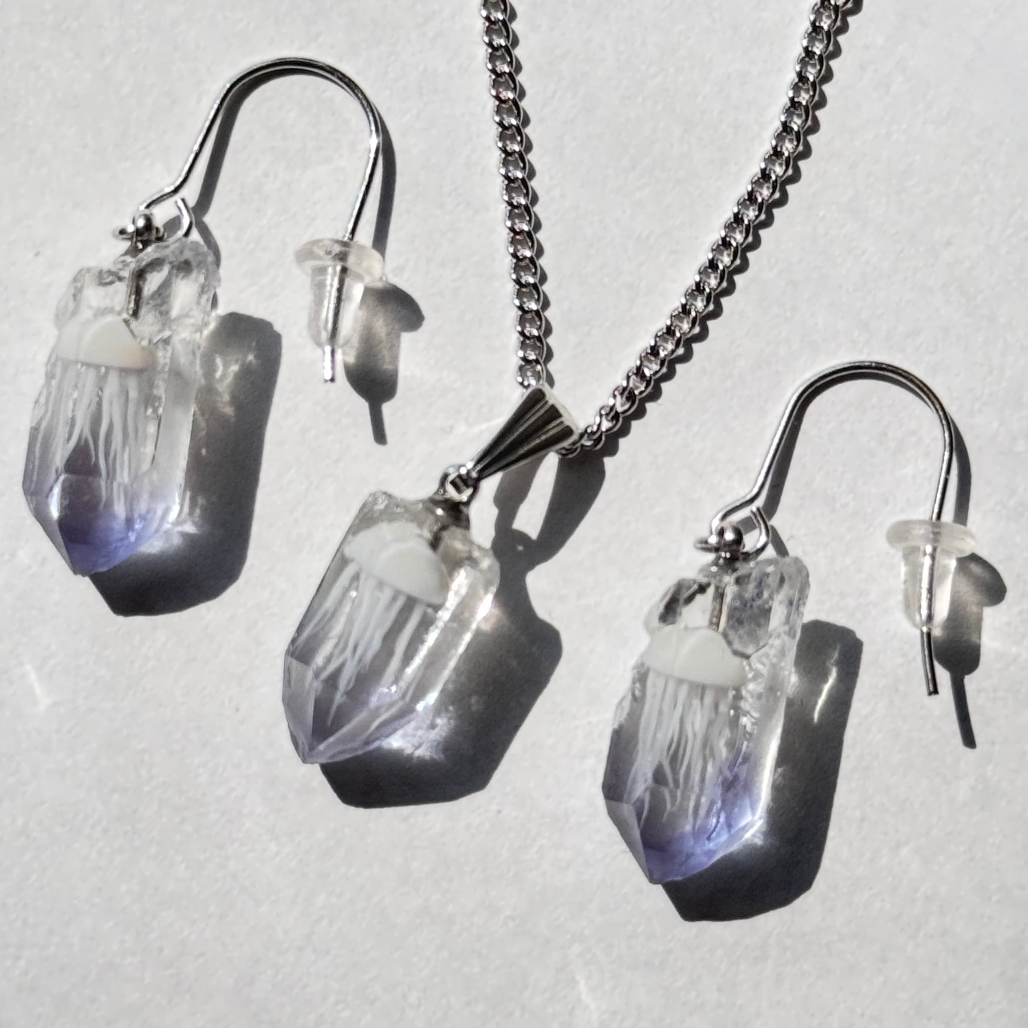 【ピアス・ネックレスセット】海水晶標本【クラゲ】