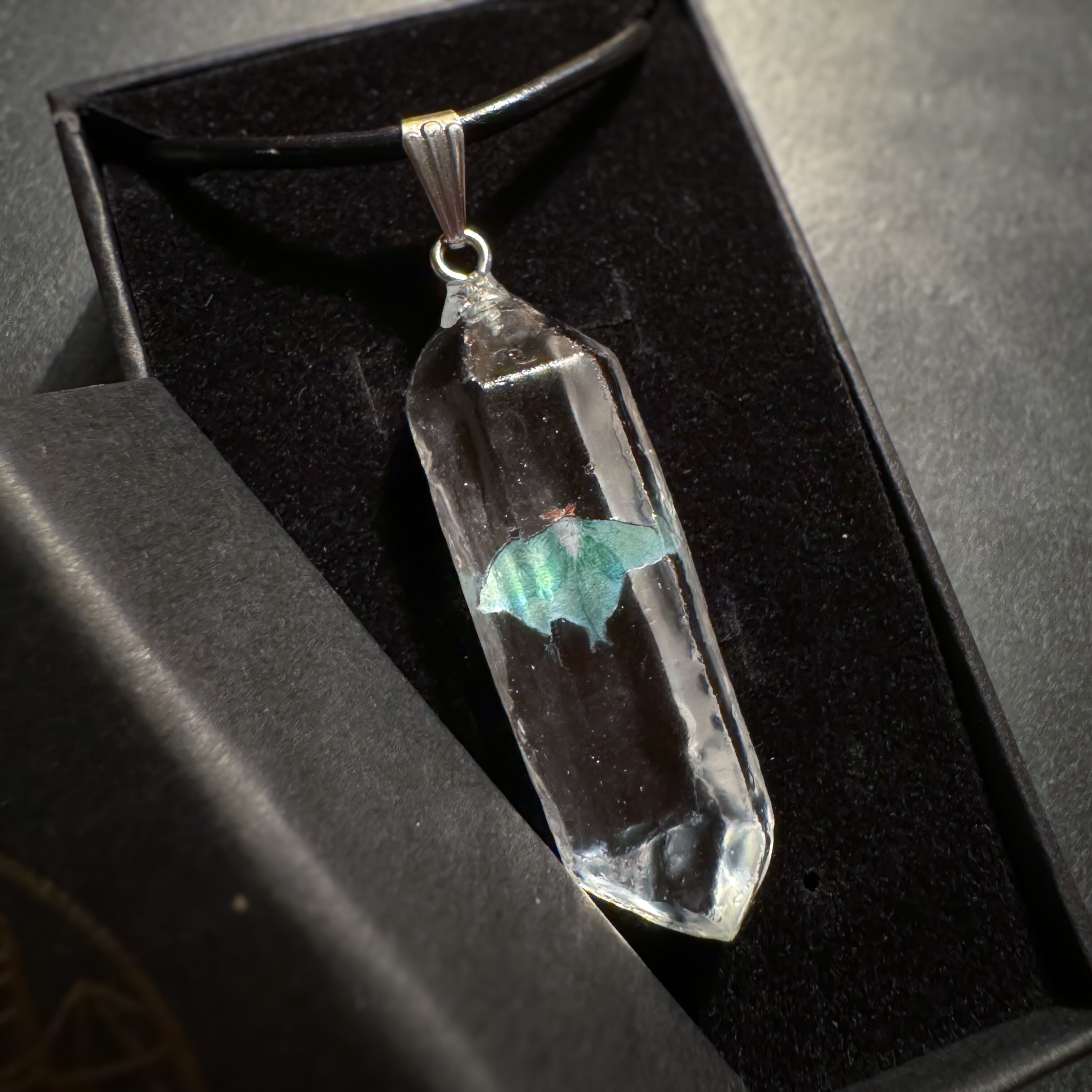 琥珀のような、水晶の中にイキモノを閉じ込めています。