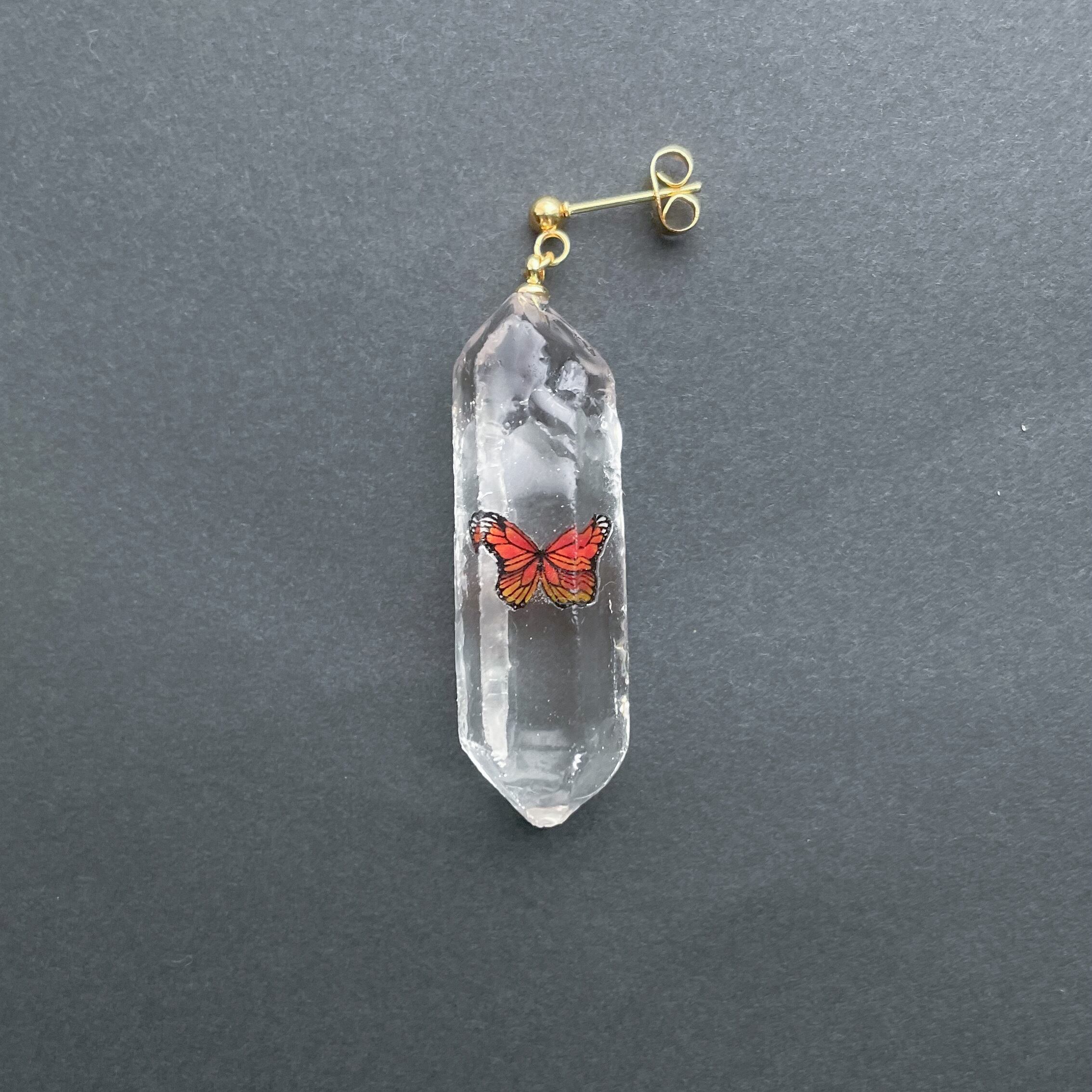 【WEB限定・片耳ピアス】水晶標本【オオカバマダラ】