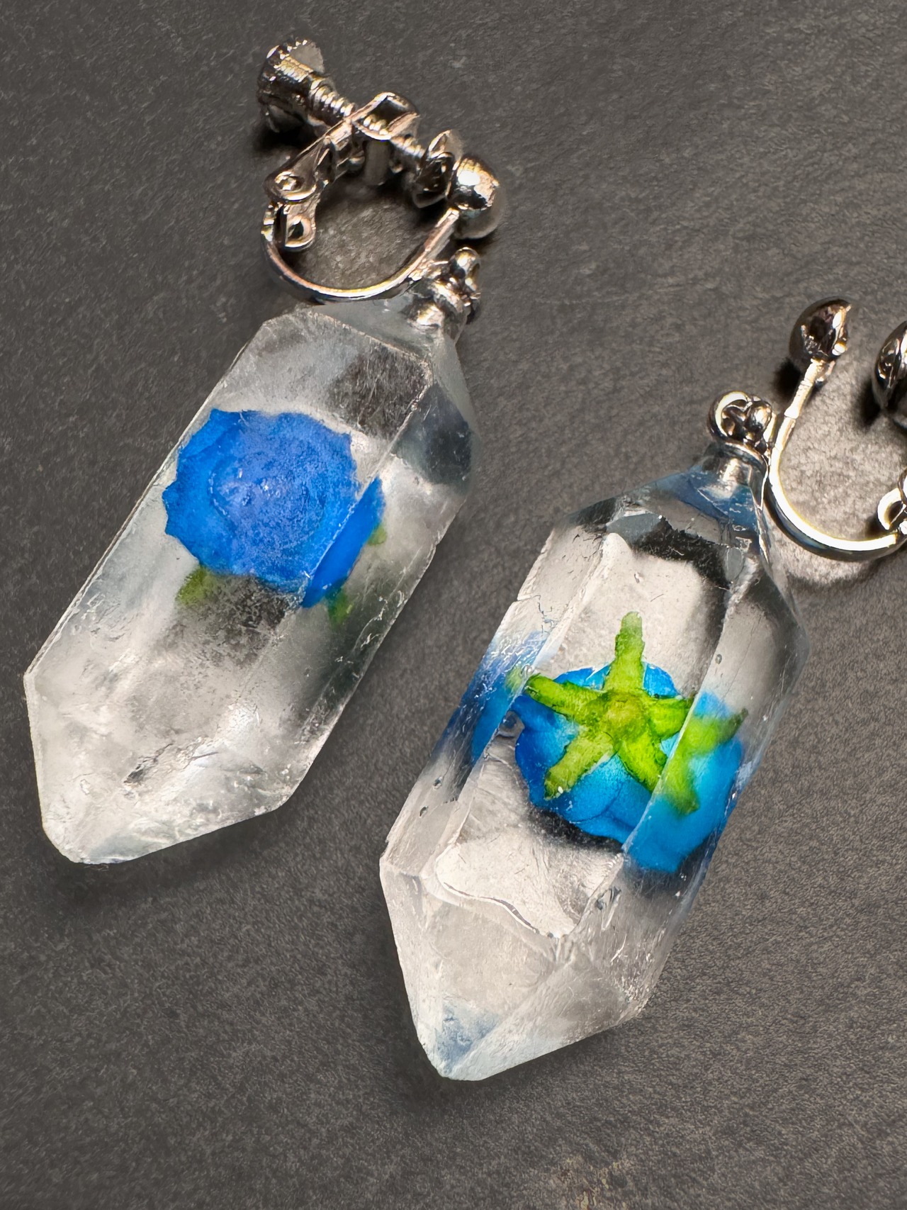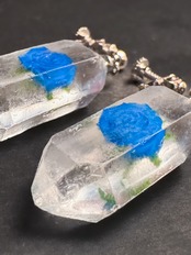【イヤリング】植物水晶標本【青い薔薇】
